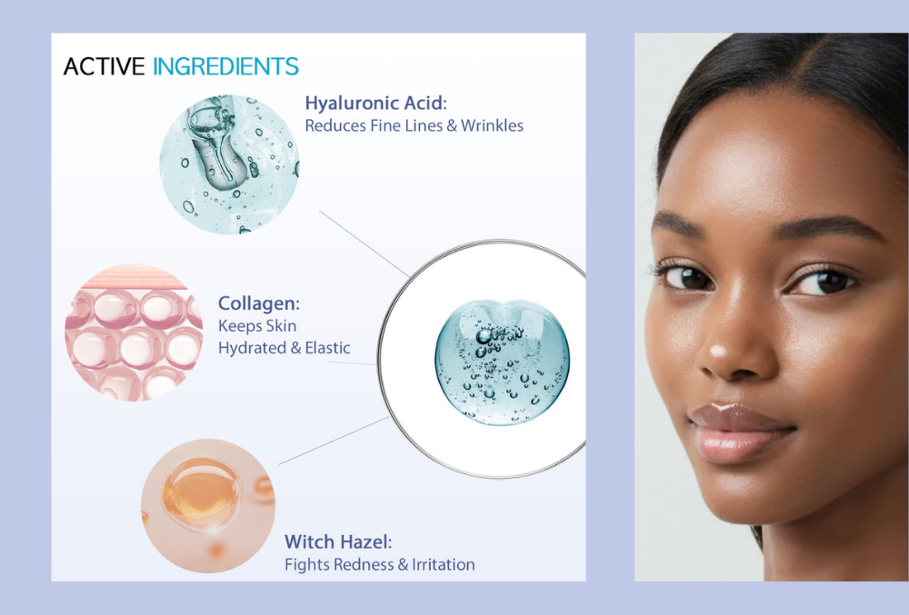 - Witch-Hazel soothes irritation and calms sensitive skin, making it ideal for troubled or delicate skin types.